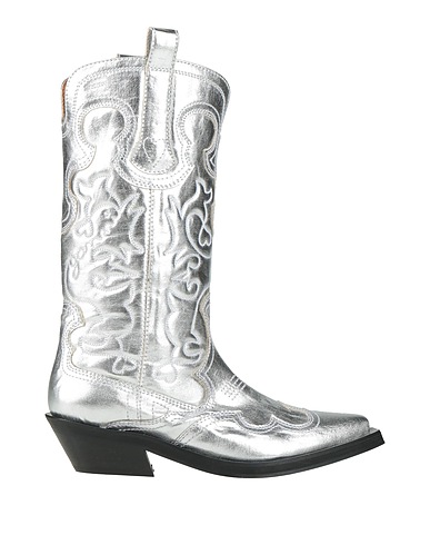 cowboy boots, woven, metallic, plain colour, embroidered, fabric inner, pointed toe, cuban heel, leather sole, contains non-textile parts of animal origin, small sized