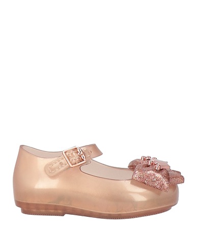 ballet flats, rubber, plastic, plain colour, glittered, bow-detailed, rubber lining, buckle fastening, round toe, flat, rubber sole