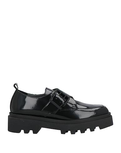 monk straps, glossed-leather, plain colour, no appliqués, leather lining, buckle fastening, square toe, square heel, rubber cleated sole, contains non-textile parts of animal origin