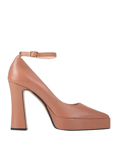 pumps, leather, plain colour, no appliqués, leather lining, buckle-fastening ankle strap, pointed toe, square heel, covered heel, rubber sole, contains non-textile parts of animal origin