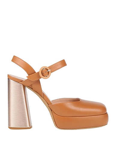 pumps, leather, plain colour, no appliqués, leather lining, buckle-fastening ankle strap, round toe, geometric heel, rubber sole, contains non-textile parts of animal origin