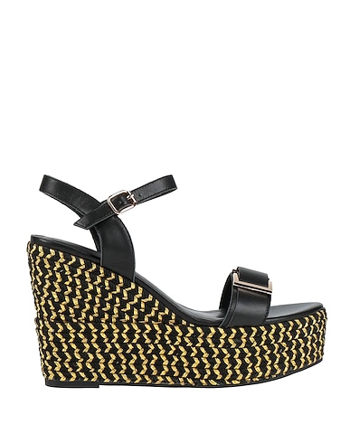 ankle strap sandals, leather, metallic, two-tone, embellished, leather lining, buckle-fastening ankle strap, round toe, wedge heel, covered wedge, rubber sole, contains non-textile parts of animal origin