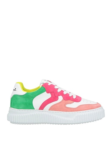 low-top trainers, leather, suede, perforated, multicolour, brand logo, leather lining, lace-up, round toe, rubber cleated sole, contains non-textile parts of animal origin