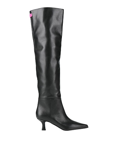 over-the-knee boots, leather, plain colour, brand logo, leather lining, pointed toe, spool heel, leather/rubber sole, contains non-textile parts of animal origin
