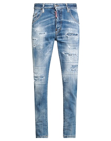Denim, Multipockets, Slim-leg pants, Torn fabric, Tapered leg, Solid colour
