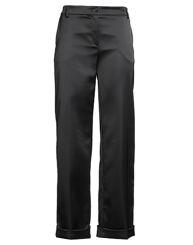 satin, no appliqués, solid colour, high waisted, belt loops, straight leg, regular fit, hook-and-eye closure, zipper closure, cuffed hems, multipockets, stretch, tailored