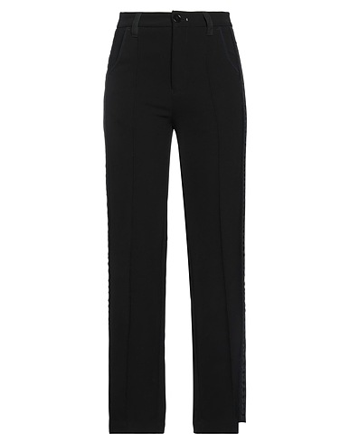 plain weave, side seam stripes, brand logo, solid colour with appliqués, high waisted, straight leg, regular fit, zipper closure, 1 button, multipockets, stretch, chinos