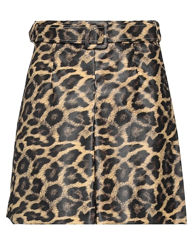 coated fabric, belt, leopard-print, unlined, zipper closure, no pockets, pencil style