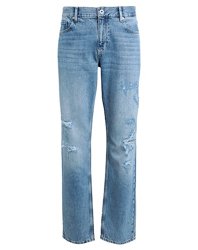 denim, faded, worn effect, brand logo, solid colour, mid rise, belt loops, straight leg, regular fit, 1 button, zipper closure, five pockets, straight-leg model