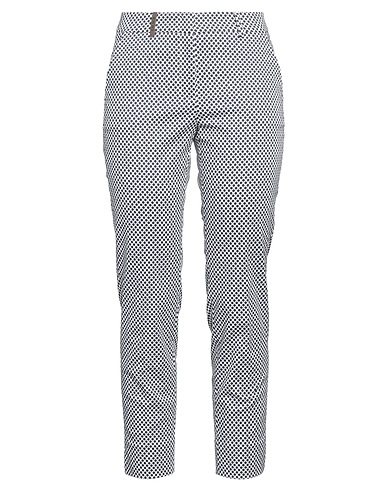 tapered trousers, woven, polka-dot, no appliqués, mid rise, regular fit, zip fastening, hook fastenings, side slit hemline, multipockets, stretch, machine wash or dry clean, do not bleach, do not tumble dry
