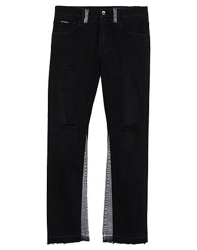 denim, torn fabric, brand logo, two-tone, coloured wash, mid rise, slim-leg pants, unlined, zipper closure, 1 button, five pockets, stretch, boot-cut model