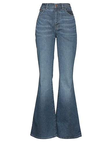 denim, faded, brand logo, plain colour, medium wash, high waisted, button closing, multipockets, large sized, flare & wide-leg