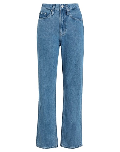 straight-leg jeans, denim, plain colour, brand logo, medium wash, high waisted, regular fit, zip fastening, 1 button, pockets, machine wash, do not bleach, do not tumble dry