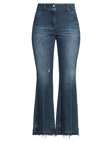denim, faded, brand logo, plain colour, dark wash, high waisted, flared cut, regular fit, snap fastenings, no pockets, flare & wide-leg