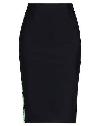 synthetic jersey, brand logo, two-tone, unlined, zip fastening, hook fastenings, no pockets, stretch, pencil skirt