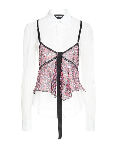 woven, chiffon, no appliqués, floral-print, classic collar, long sleeves, hidden buttons, contains non-textile parts of animal origin, do not wash, do not tumble dry, do not bleach, shirt
