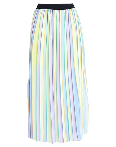 crepe, brand logo, pleated, striped, elasticised waist, partially lined, side slit, machine wash, do not bleach, tumble dry, pleated skirt