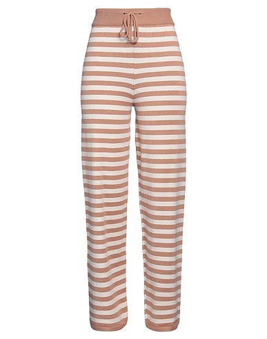 knitted, lightweight knit, brand logo, striped, high waisted, drawstring waist, regular fit, without pockets, hand wash or dry clean, do not bleach, do not tumble dry, do not iron, straight-leg trousers