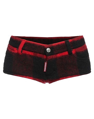 felt, brand logo, tartan pattern, low waisted, belt loops, button fastenings, multipockets, do not wash, do not bleach, do not tumble dry, do not iron, hot pants