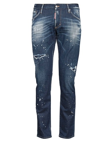 straight-leg jeans, denim, distressed, faded, stretchy fabric, tie-dyed, brand logo, dark wash, low waisted, regular fit, button fastenings, five pockets, machine wash or dry clean, do not bleach, do not tumble dry