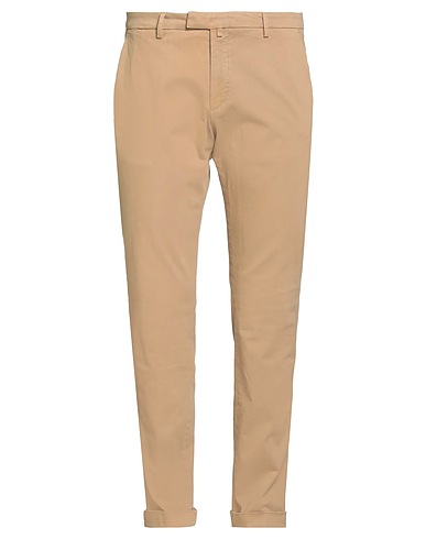 chino trousers, twill, stretchy fabric, plain colour, no appliqués, mid rise, straight leg, regular fit, button fastenings, zip fastening, welt pockets, slit pockets, machine wash or dry clean, do not bleach, do not tumble dry, this brand runs small
