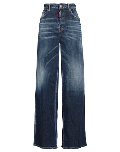 wide-leg jeans, denim, faded, distressed, plain colour, brand logo, dark wash, high waisted, regular fit, concealed button fastenings, 1 button, multipockets, stretchy fabric, machine wash or dry clean, do not bleach, do not tumble dry