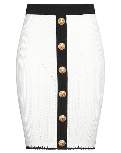 pencil skirt, knitted, lightweight knit, two-tone, button-embellished, elasticised waist, dry clean, do not bleach, do not tumble dry