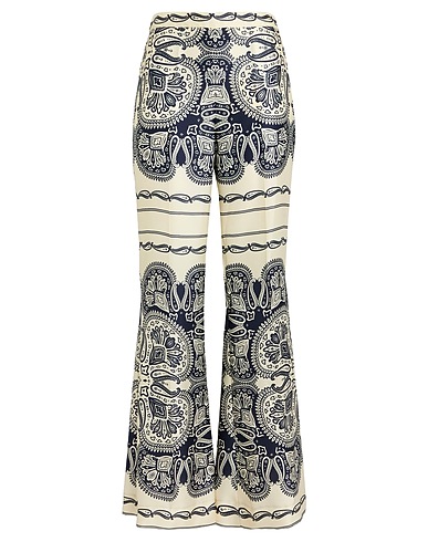 flared trousers, satin, two-tone, no appliqués, high waisted, regular fit, zip fastening, machine wash or dry clean, do not bleach, do not tumble dry