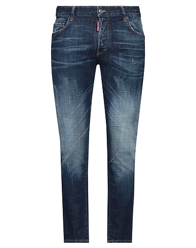 skinny jeans, denim, distressed, faded, stretchy fabric, plain colour, brand logo, dark wash, mid rise, slim fit, button fastenings, five pockets, machine wash or dry clean, do not bleach, do not tumble dry, contains non-textile parts of animal origin