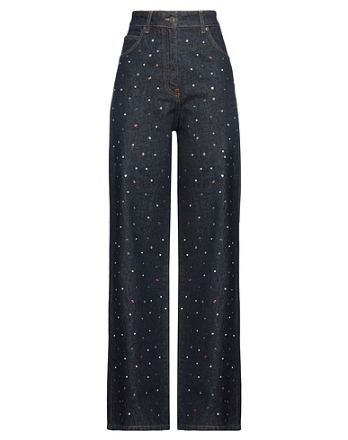 straight-leg jeans, denim, plain colour, embroidered logo, embellished, dark wash, high waisted, regular fit, 1 button, zip fastening, multipockets, hand wash, do not bleach, do not tumble dry