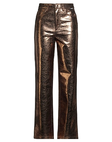 straight-leg trousers, coated fabric, metallic, stretchy fabric, plain colour, brand logo, high waisted, belt loops, regular fit, zip fastening, hook fastenings, slit pockets, patch pockets, hand wash or dry clean, do not bleach, do not tumble dry, do not iron, amp up the glamour with chic designer party outfits for your next event or fun night out