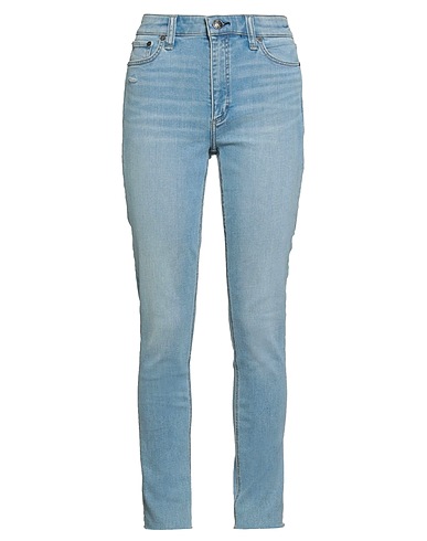 skinny jeans, denim, faded, distressed, plain colour, brand logo, light wash, high waisted, belt loops, slim fit, zip fastening, 1 button, fringed hem, stretch, machine wash, do not bleach, tumble dry, this brand runs large