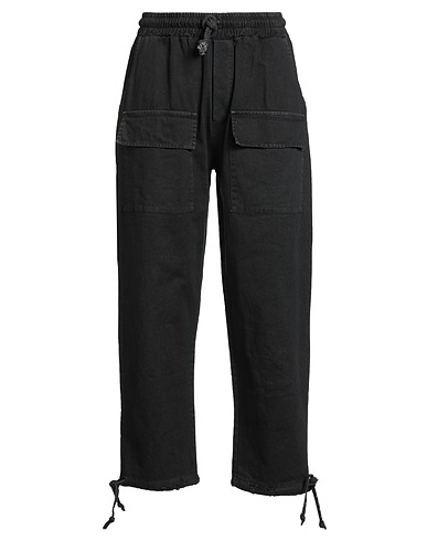 cargo trousers, twill, plain colour with print, brand logo, high waisted, belt loops, relaxed fit, zip fastening, drawstring hem, flap pockets, slit pockets, machine wash, do not bleach, do not tumble dry