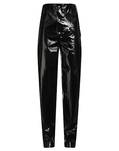 tapered trousers, coated fabric, plain colour, no appliqués, high waisted, regular fit, button fastenings, flap pocket, do not wash, do not bleach, do not tumble dry, contains non-textile parts of animal origin, this brand runs small