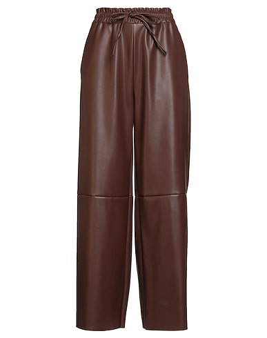 wide-leg trousers, coated fabric, plain colour, no appliqués, high waisted, drawstring waist, regular fit, slit pockets, hand wash or dry clean, do not bleach, do not tumble dry, do not iron