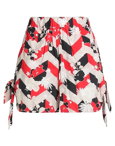 shorts, woven, floral-print, no appliqués, bow-detailed, high waisted, elasticised waist, slit pockets, machine wash or dry clean, do not bleach, do not tumble dry