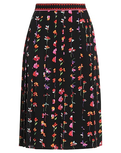 pleated skirt, satin, floral-print, no appliqués, 1 button, dry clean, do not bleach, do not tumble dry