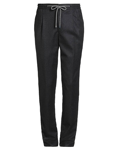 tailored trousers, wool, flannel, plain colour, no appliqués, mid rise, drawstring waist, tapered leg, regular fit, zip fastening, button fastenings, slit pockets, welt pockets, dry clean, do not bleach, do not tumble dry