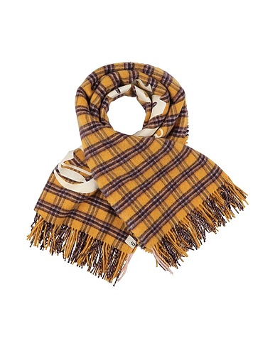 stole, flannel, fringes, brand logo, tartan pattern, dry clean, do not bleach, do not tumble dry
