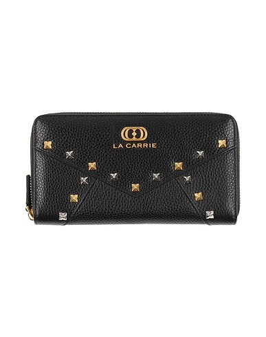 wallet, coated fabric, plain colour with appliqués, brand logo, studs, zip fastening, card slots