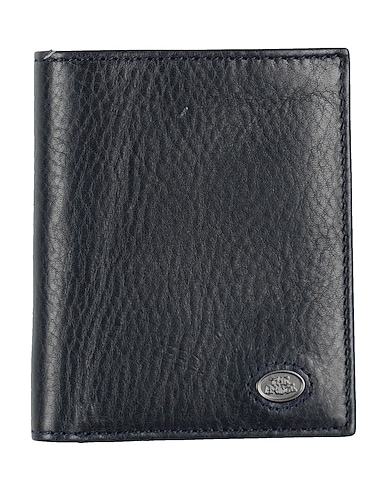 wallet, pebbled-leather, plain colour, brand logo, internal compartments, card slots, contains non-textile parts of animal origin