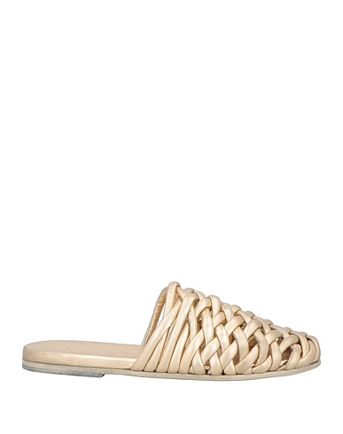 mules, leather, metallic, plain colour, no appliqués, leather lining, round toe, flat, leather sole, contains non-textile parts of animal origin, large sized