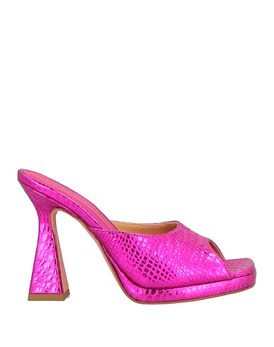 slide sandals, leather, metallic, snakeskin-print, no appliqués, leather lining, square toe, spool heel, leather sole, contains non-textile parts of animal origin