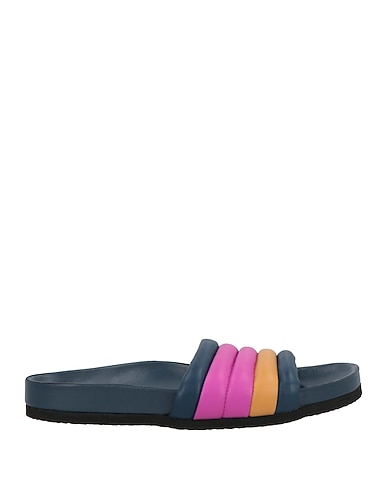 slide sandals, leather, multicolour, no appliqués, leather lining, round toe, flat, rubber sole, contains non-textile parts of animal origin