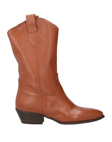 cowboy boots, leather, plain colour, no appliqués, leather lining, pointed toe, flat, rubber sole, contains non-textile parts of animal origin