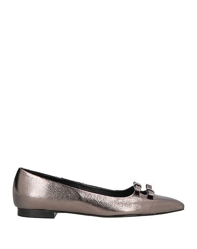 ballet flats, leather, metallic, plain colour with appliqués, bow-detailed, leather lining, pointed toe, flat, rubber sole, contains non-textile parts of animal origin