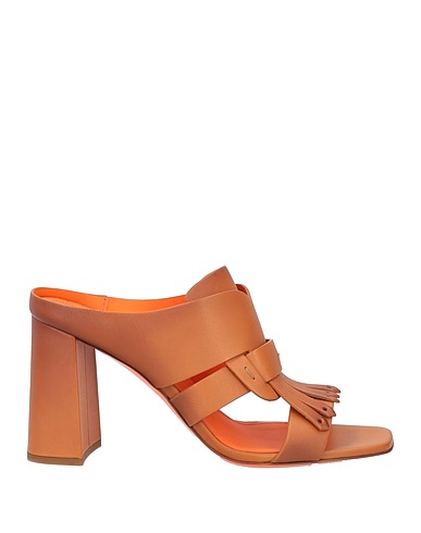 slide sandals, leather, plain colour with appliqués, fringes, leather lining, square toe, square heel, covered heel, leather/rubber sole, contains non-textile parts of animal origin, large sized