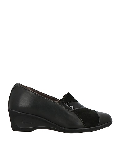 loafers, leather, suede, plain colour, patent-leather trims, leather lining, round toe, wedge heel, rubber cleated sole, contains non-textile parts of animal origin