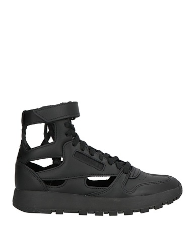 high-top trainers, leather, shell, plain colour, brand logo, fabric inner, velcro fastening, lace-up, round toe, rubber sole, contains non-textile parts of animal origin