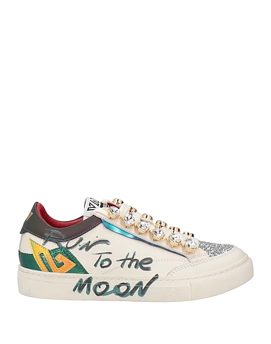 low-top trainers, leather, multicolour, glittered, metallic trim, leather lining, round toe, rubber cleated sole, contains non-textile parts of animal origin